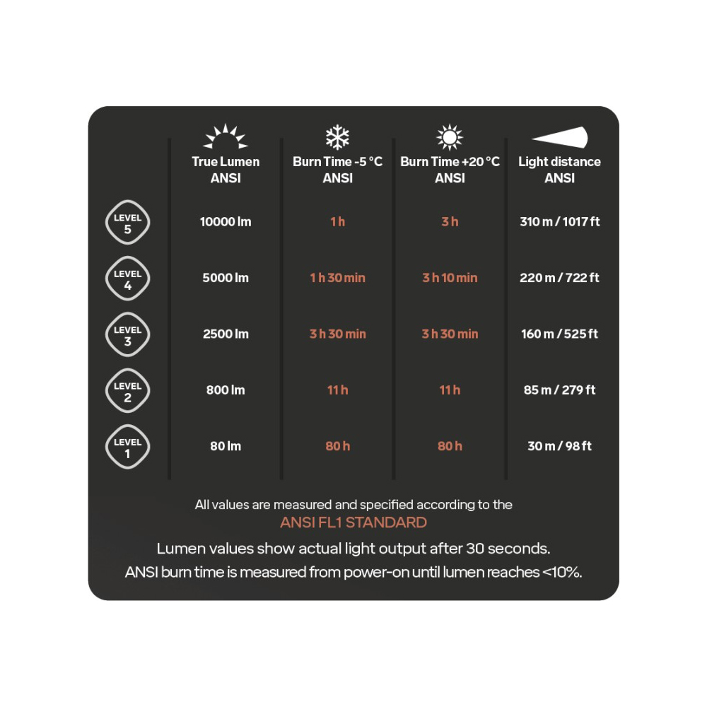 Spectra från Silva är pannlampan med 10 000 lumen som kan förvandla natt till dag. Spectra har en elegant och intuitiv design med ett kraftfullt 96 Wh batteri.