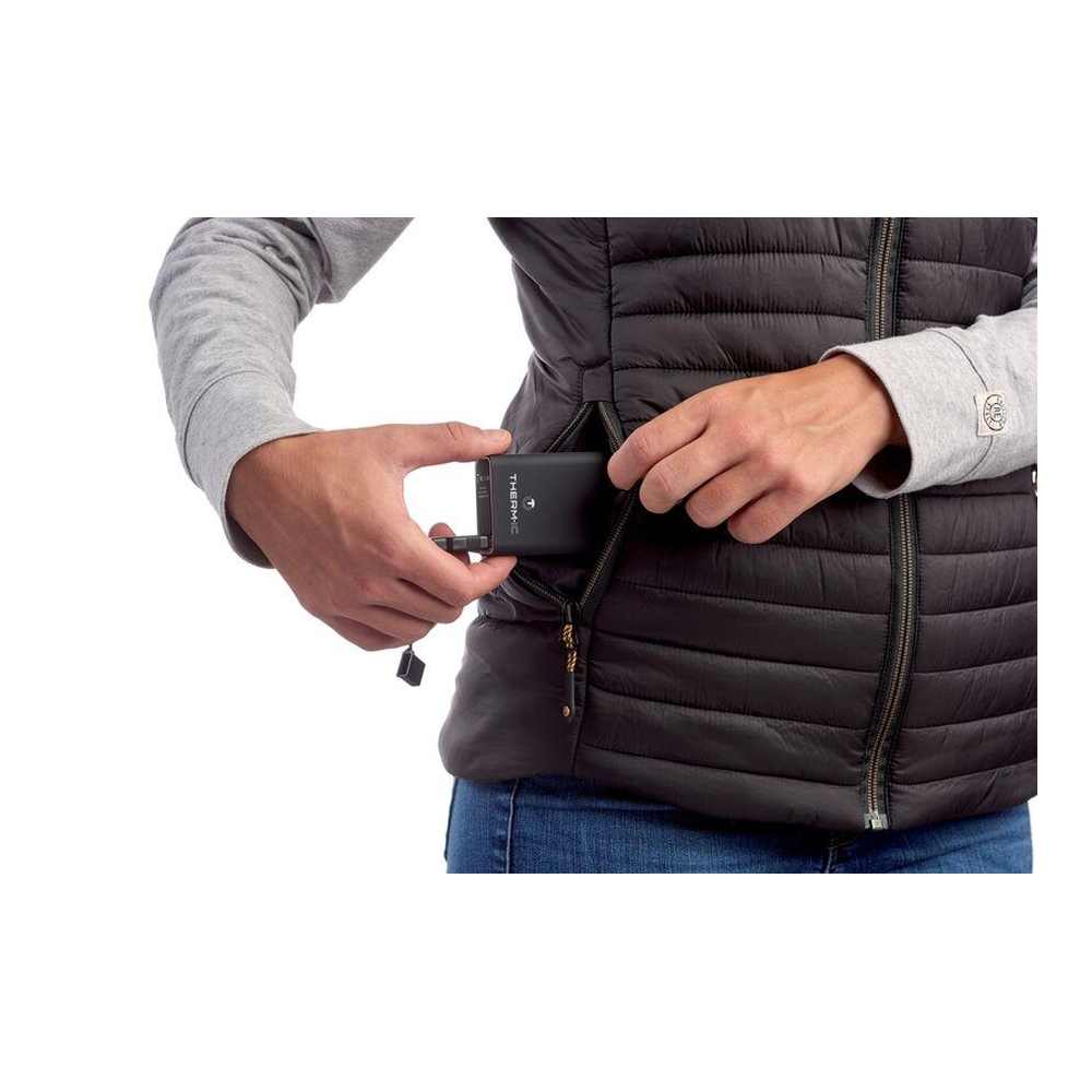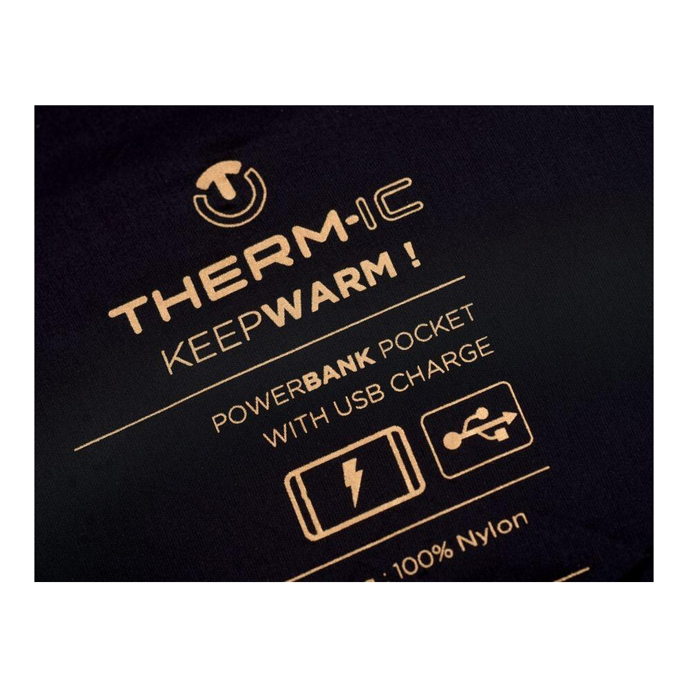 - Västen är kompatibel med alla externa USB-laddare och USB-powerbanks. Vi rekommenderar Therm-Ic Universal Powerbank.